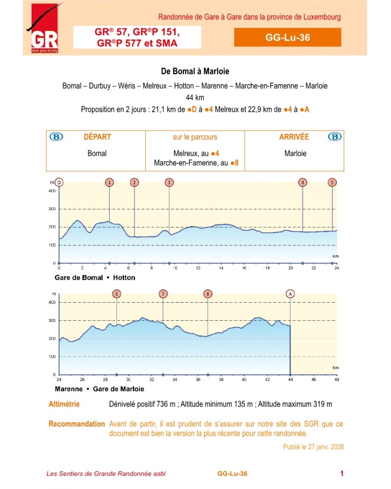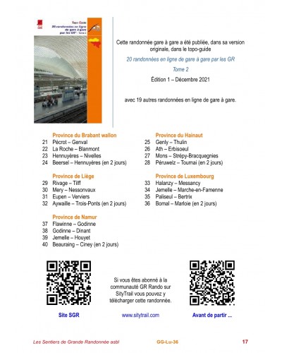 Cette randonnée en ligne d’une journée est issue du topo-guide « Randonnées en Ligne de gare à gare dans les provinces wallonnes – Tome 2 ».