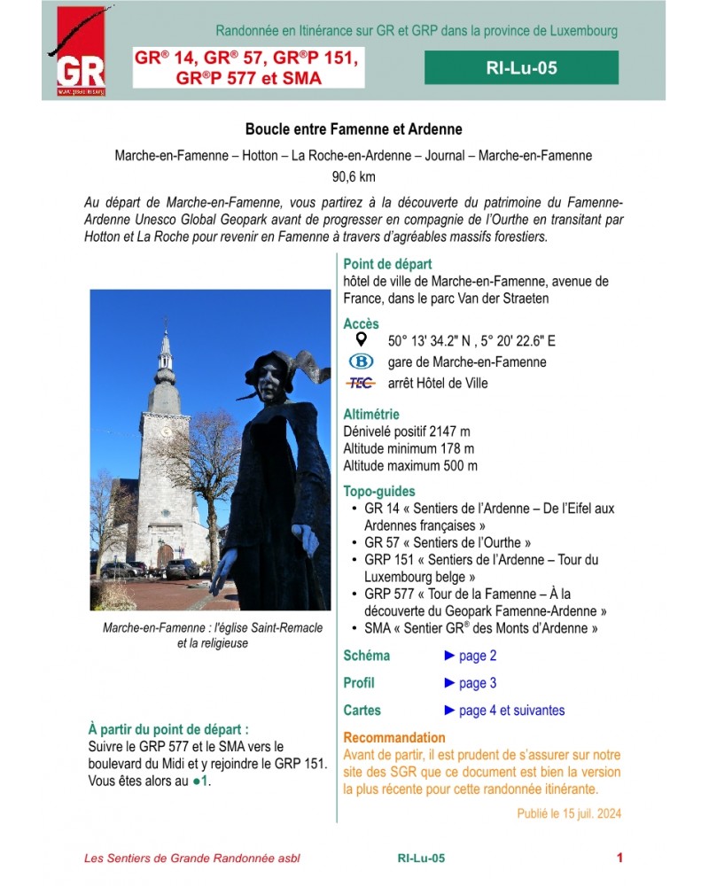 Les « Randonnées boucles en itinérance » (ou R.I.), pour la plupart d’entre elles d’une longueur comprise entre 60 à 100 km, proposent des boucles entièrement conçues sur les GR® et GR®P ( GR® de Pays en Wallonie).